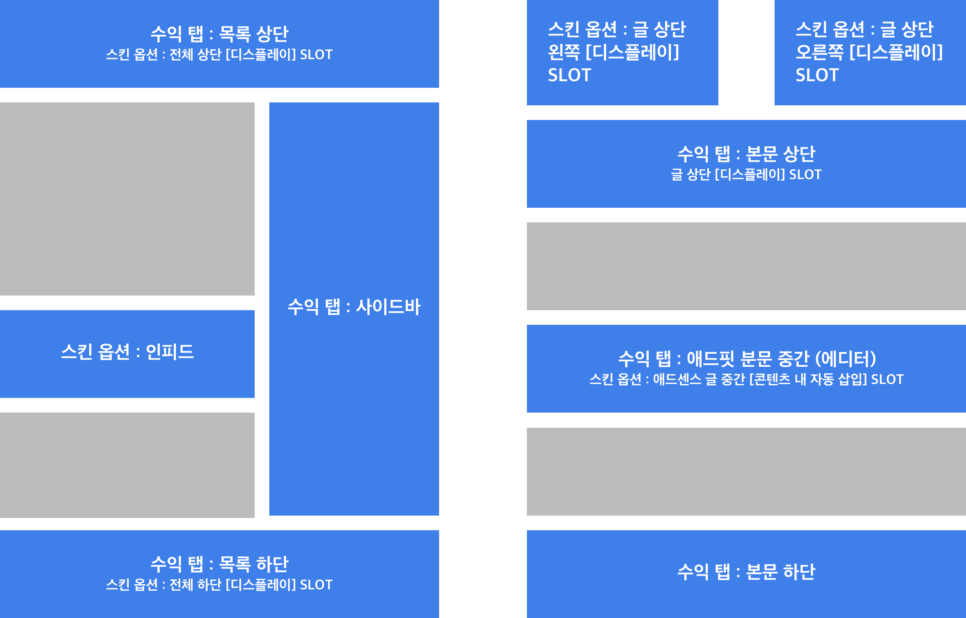 '수익 탭'과 '스킨 옵션'이 동시에 쓰인 광고 영역은 티스토리의 자제적인 광고 설정 기능인 수익 메뉴에서 더 간편한 이용이 가능하오니, 되도록 티스토리의 수익 메뉴를 이용해 주시기 바랍니다.