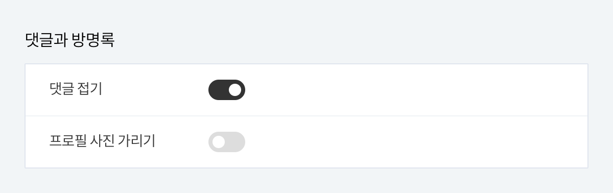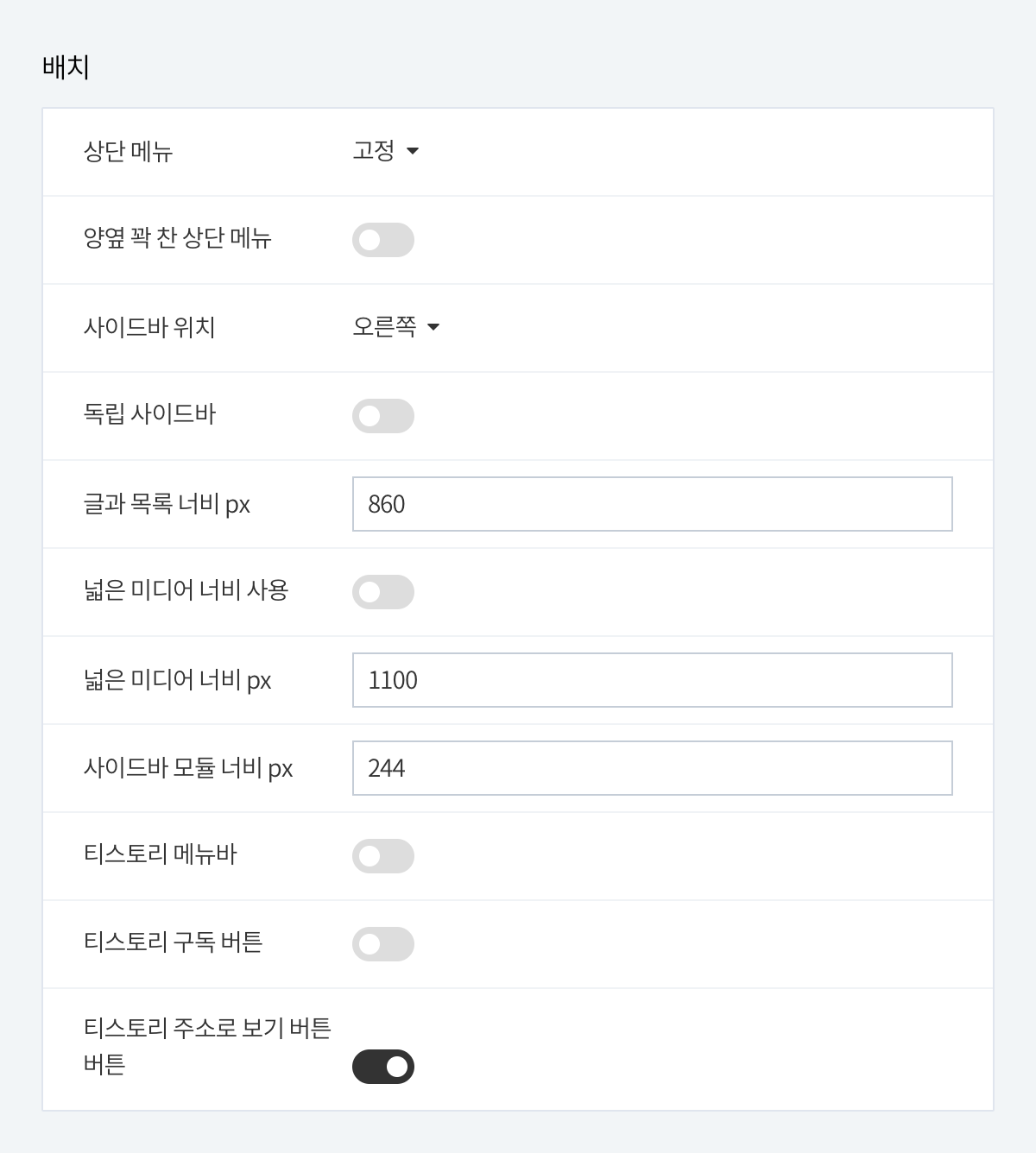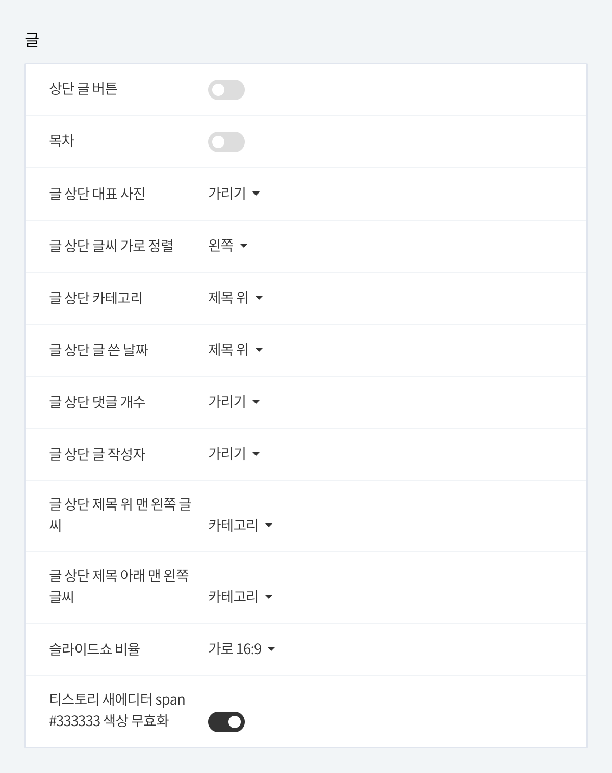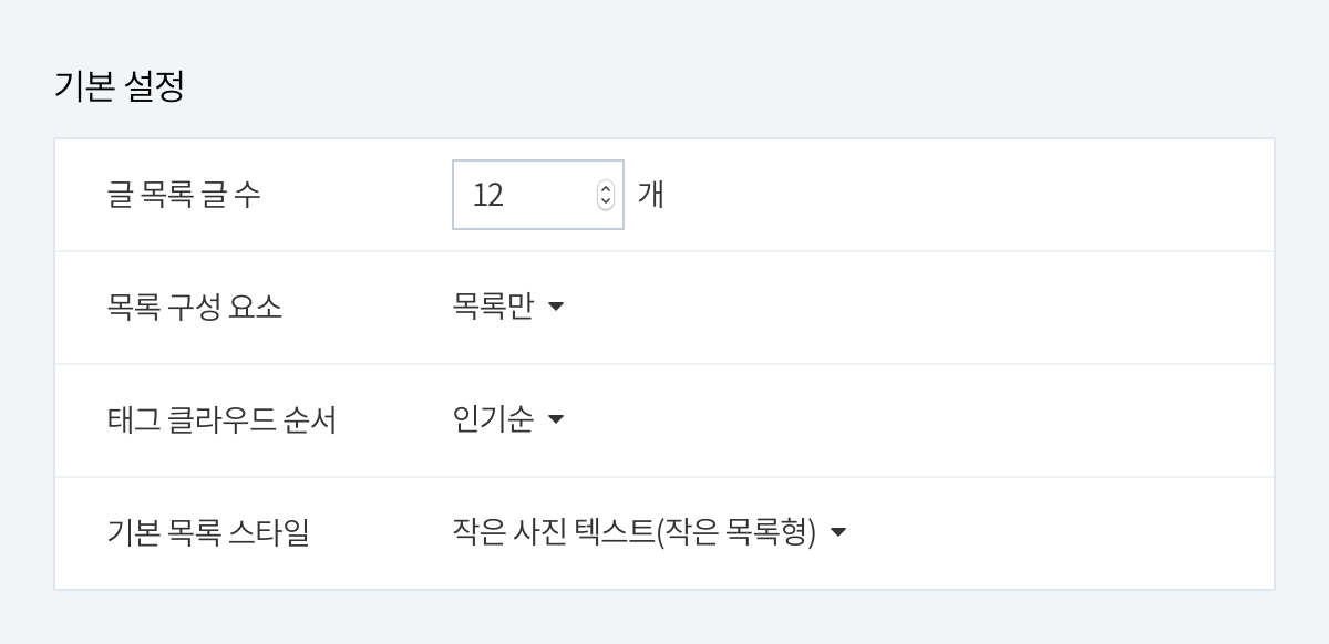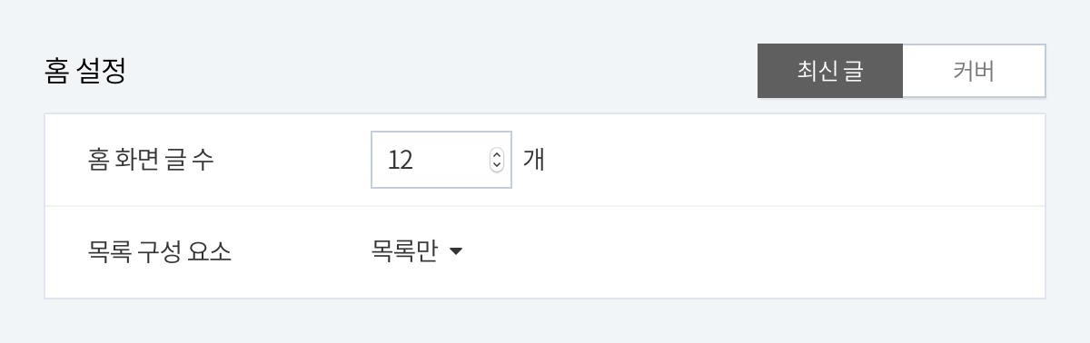 홈 화면을 제외한 메인 섹션의 글 목록에 보여줄 글이 몇 개일지를 정할 수 있습니다.